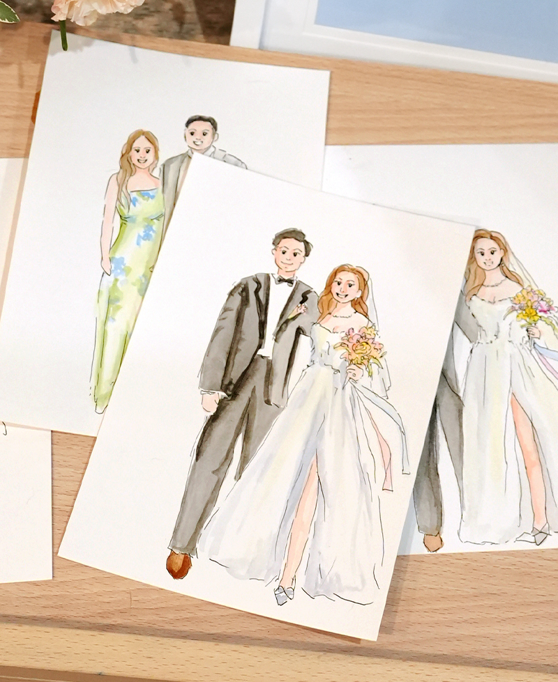 a graphic designer and live portrait artist based in Sydney who’s absolutely passionate about bringing joy to special moments. With years of experience in both the design and wedding industries, I’ve developed a unique artistic touch that turns moments into beautiful, lasting memories.